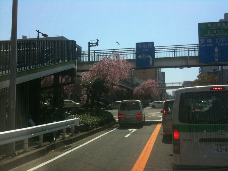 フロントガラス越しに見えた桜