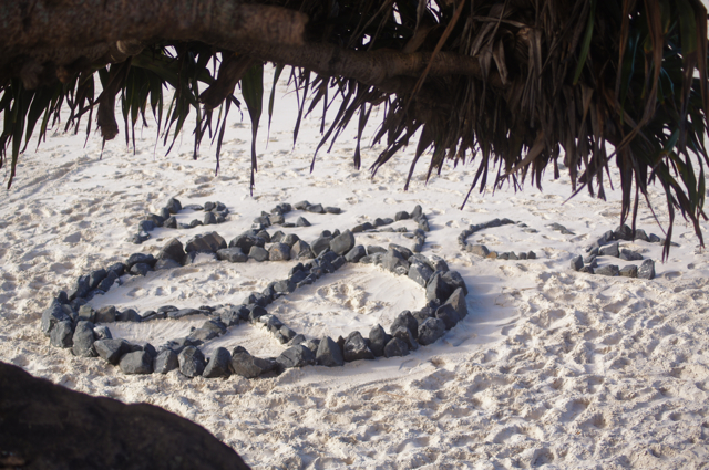ビーチに石を並べて作ってある