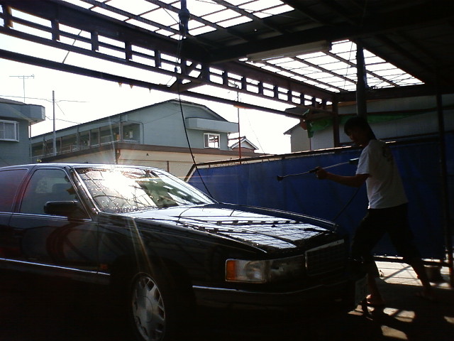 その間にボディーをこする。 噴射時間5分を残して停止させた。 しかし長い間は待ってくれなかった。 タイマーが突然減り始めた。 ヤバい、慌てて噴射スイッチを押し作動させる。 噴射ガンは地面に置いたままだ。 水が勢いよく出始めた。 あとはみなさんの想像の通りです。 ガンは暴れだし捕まえようとしても水をかけられるだけで一向に捕まらない。 ビショビショに濡れやっとの思いでガンを捕まえ、再度車に向け噴射した。 ふーっ、何とか終わった。 そして拭き取り開始。 デカい、とにかくデカい。 拭いても拭いてもまだ終わらない。 すると仲間(洗車しにきた人、他人です)がやって来た。 (先ほどの失態が見られなくてよかった) 彼は上級者らしくスムーズに作業を終わらせ、別の場所に移動し拭き取り始めた。 一方、まったくの初心者の私は洗車スペースでいつまでも拭き取りを続けていた。 また仲間がやって来た。 明らかに邪魔をしていた。 洗った後は拭き取りスペースに移動するのがルールらしい。 こうして初めての洗車場(戦車場、車と戦う場所)デビューは大失敗の連続に終わった。
